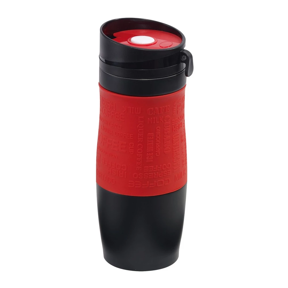 GOLDEN DREAM duplafalú termoszbögre : rozsdamentes acélból, biztonságos csavaros műanyag fedél, nyomógombos nyitó/záró mechanizmus – kívül akasztóval a bögrére akasztáshoz, színes gumiborítás a biztosabb fogás érdekében, kb. 380 ml-es kapacitás, ajándékdobozban. Termék színe: fekete, vörös