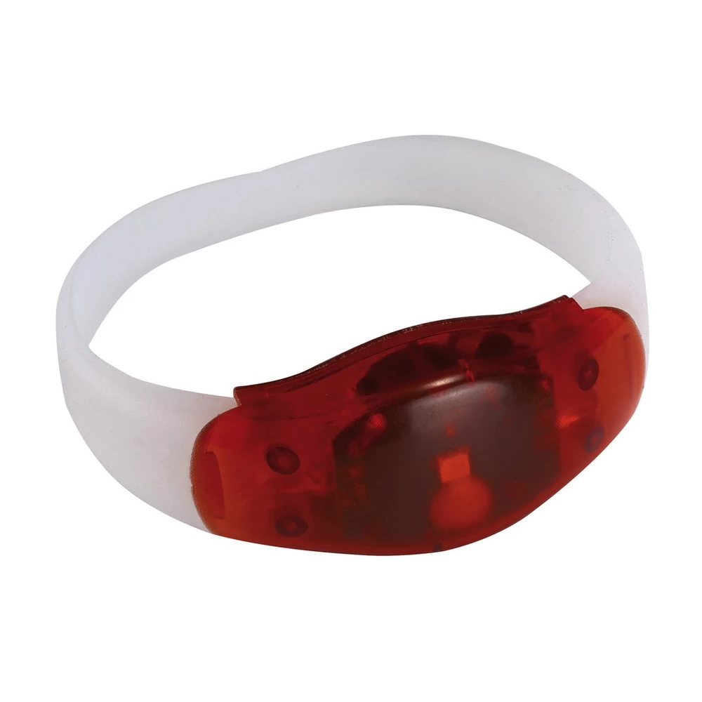 FESTIVAL világító csuklópánt 3 db LED égővel, 2 féle világítási móddal (folyamatos és villogó), tejfehér színű csuklópánttal, mely világít a sötétben. Termék színe: vörös, átlátszó